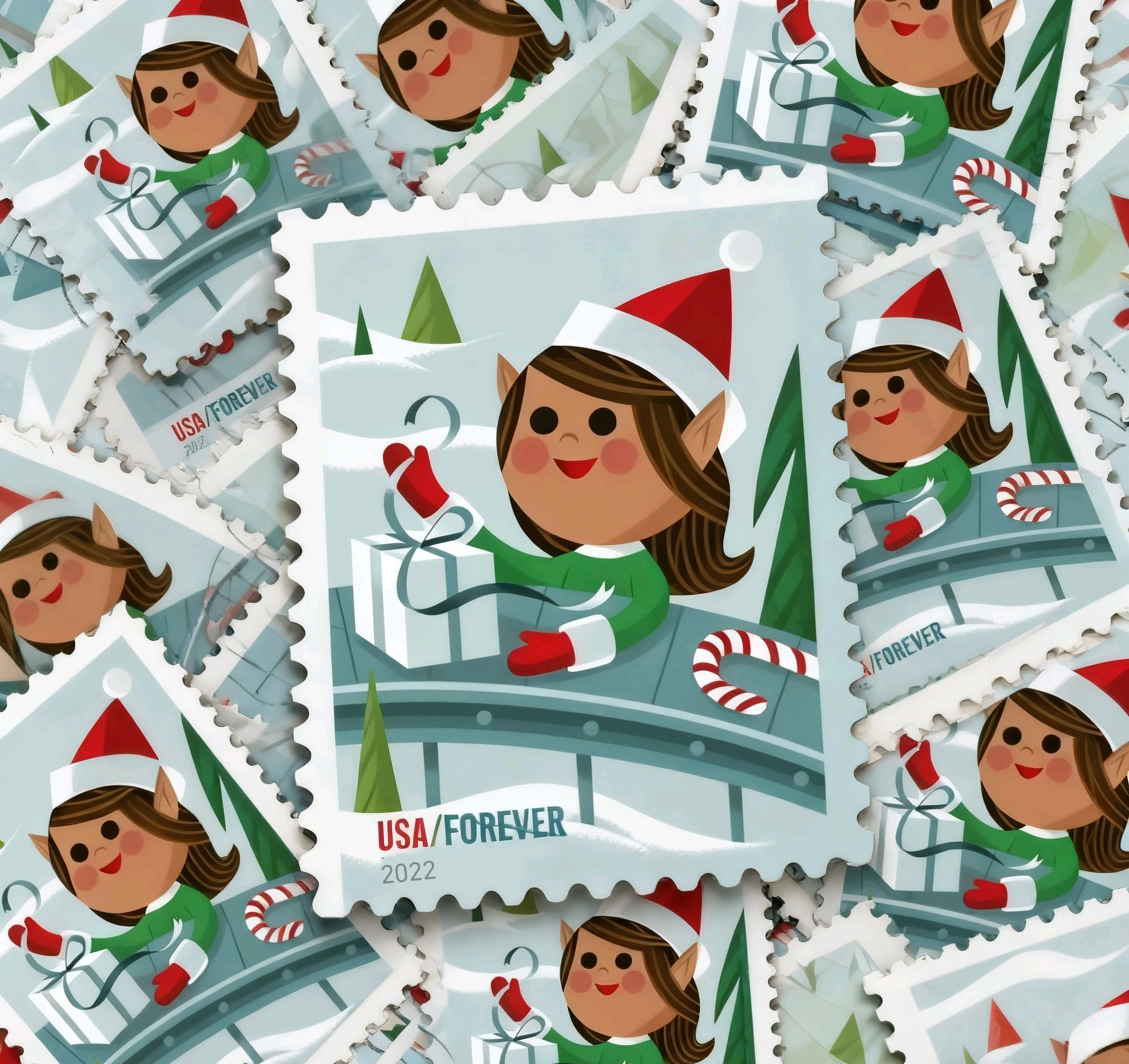 Add a sprinkle of holiday cheer to every letter or package you send with the Holiday Elves Forever Stamps! Adorned with delightful illustrations of joyful elves hard at work crafting their magic, these stamps perfectly capture the spirit of the season while ensuring your mail stands out with a playful personality.